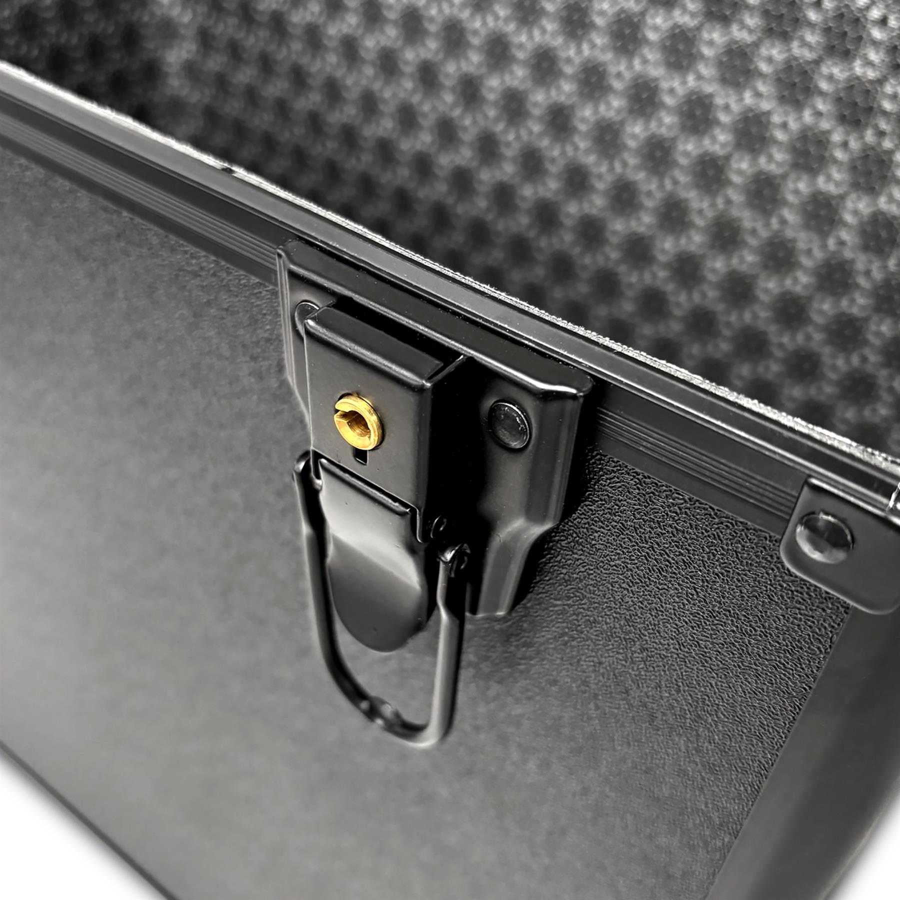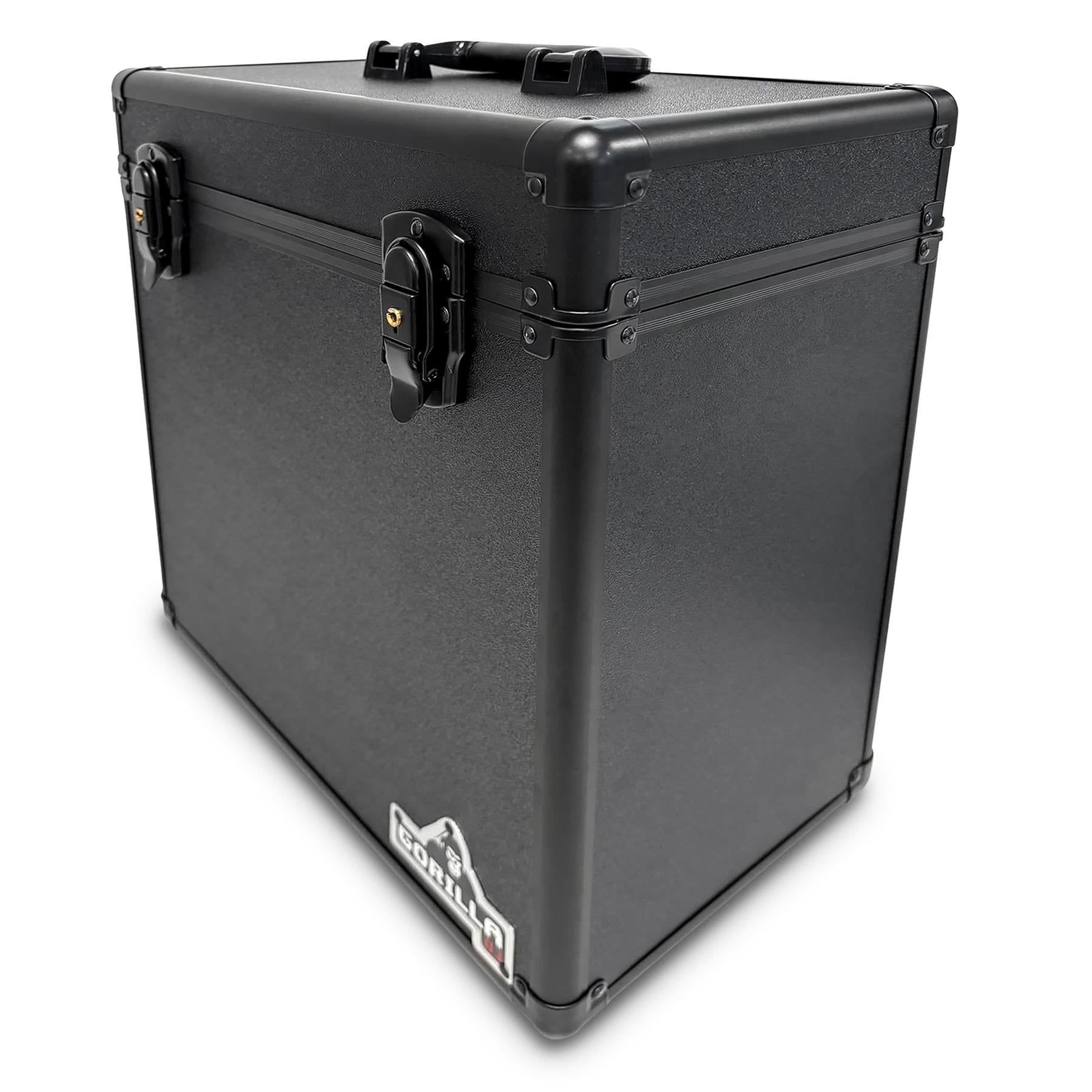 Gorilla LP50 (holds 50pcs records) 12" Vinyl Record storage case in an all black finish is the best in it's class, featuring strong but light weight design, strong latches (including locks and keys) and an interior lining. We believe that there is no other case stronger than this Gorilla to protect your 12" vinyl at this price.