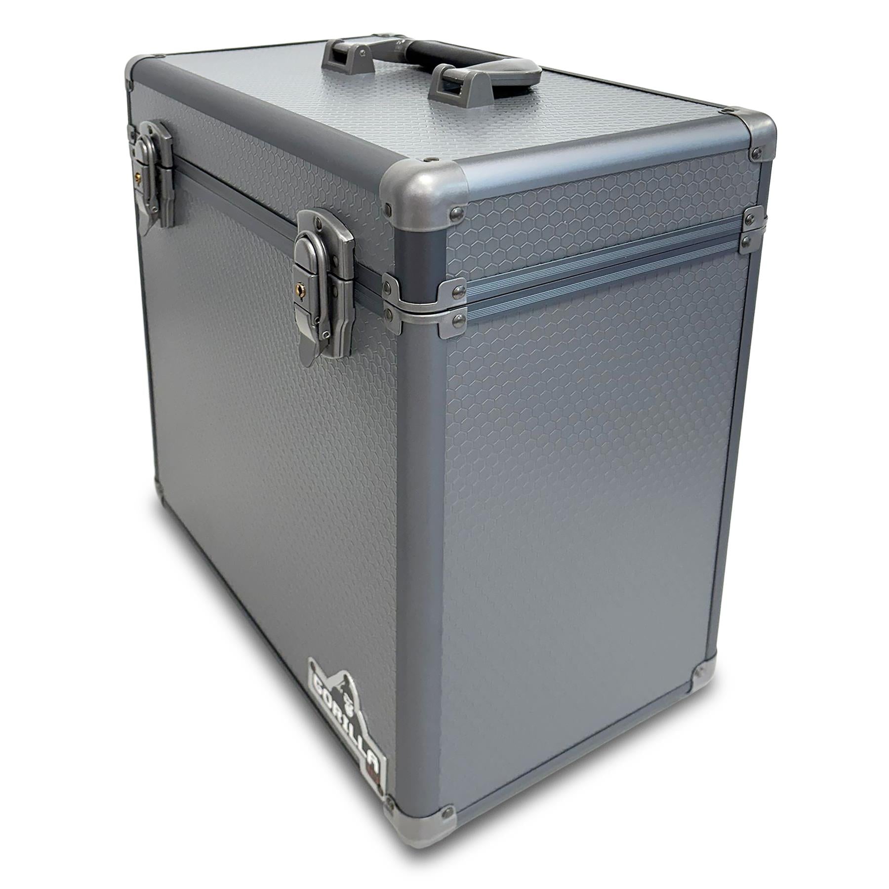 Gorilla LP50 (holds 50pcs records) 12" vinyl record storage case in a grey finish is the best in it's class, featuring strong but light weight design, strong latches (including locks and keys) and an interior lining. We believe that there is no other case stronger than this Gorilla to protect your 12" vinyl at this price.